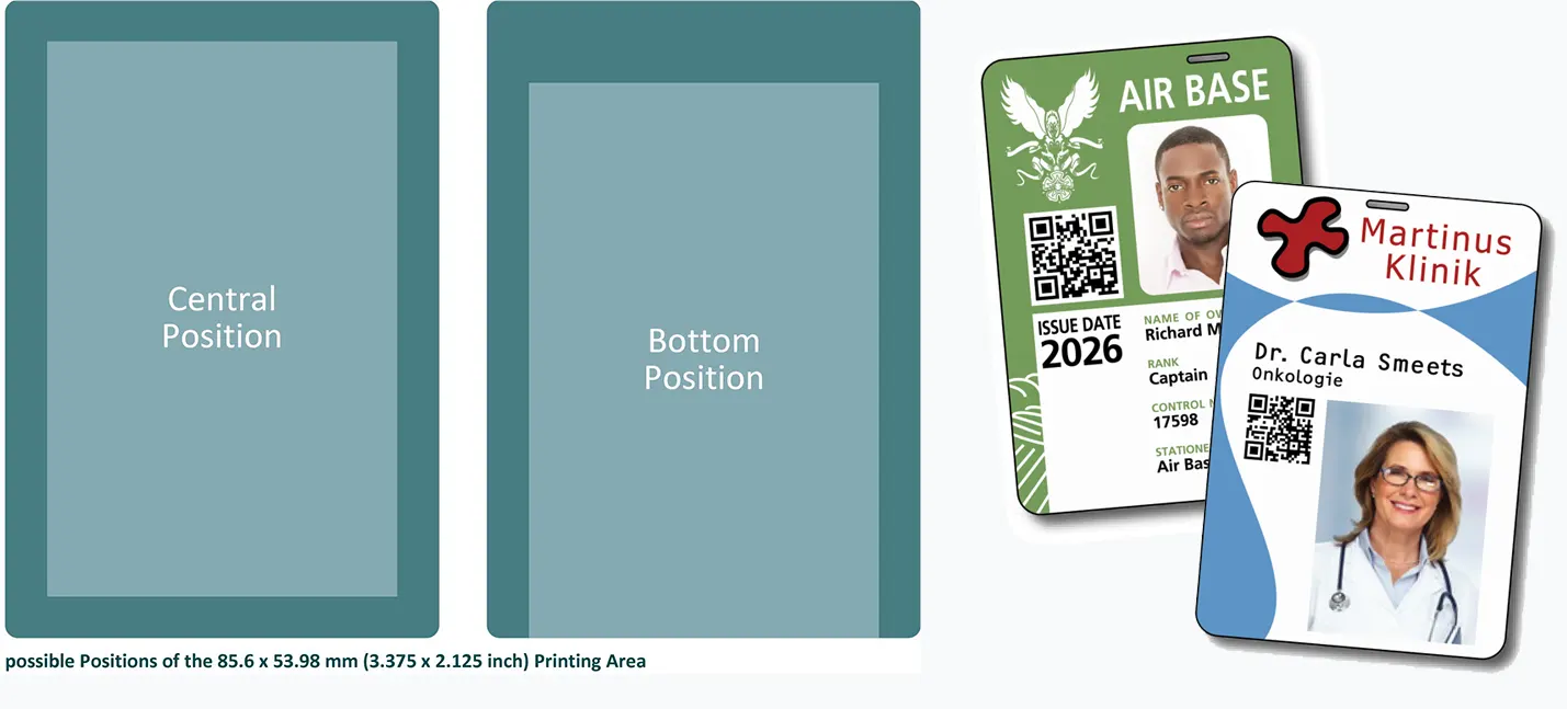 Preprinting the cards is recommended. By personalizing CR100 cards that already include a preprinted frame, you can create highly recognizable, professional large-format badges ideal for hospitals, event venues, security organizations, military installations, and other high-security environments.